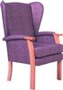 Bruges High Back Chair, an economical high-seat chair with an upright seating position with additional lumbar support. It comes with polished wooden arms as the basic model, with optional upholstered arms, optional wings, and optional filled upholstered sides. The chairs are suitable for use in the nursing home or care home and ideal in other healthcare environments such as ward rooms, day care, hospices and housing associations. It is available in a range of anti-microbial vinyls and fabric upholstery options. Vinyl upholstery is recommended for settings requiring quick wipe clean programmes, while fabric upholstery remains waterproofed and washable with a laminated backing, but will require a different cleaning regime. (For further details on the upholstery composition and cleaning please click the (i) on the tabs below.) The chair comes in a choice of 5 wood finishes and is sprayed with antimicrobial lacquer finish. Minimum Order 5 Chairs. (Contact the office for orders under minimum quantity).