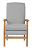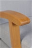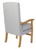 The Jubilee High Back Chair, a classic and economical high seat chair with removable seat cushion, wooden arms, high back and front cross bar. The chairs are suitable for use domestic use, in the nursing home or care home and ideal in other healthcare environments such as hospital ward rooms, day care, hospices and housing associations. It is a stock chair with a 5-7 day delivery from order for single chair orders only and if more than one is required contact the office and additional delivery charges will apply and available in an anti-microbial fabric covering Ashforrd Eclipse Silver Fabric. For Cleaning and Care please call the office for details. The chair frame comes in a lacquered oak wood finish.