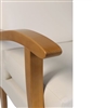 The Jubilee High Back Chair, a classic and economical high seat chair with removable seat cushion, wooden arms, high back and front cross bar. The chairs are suitable for use domestic use, in the nursing home or care home and ideal in other healthcare environments such as hospital ward rooms, day care, hospices and housing associations. It is a stock chair with a 5-10 working day delivery from order for single chair orders only and if more than one is required contact the office and additional delivery charges will apply and available in an anti-microbial vinyl covering C&L Manhattan Plains Cream Vinyl. For Cleaning and Care Please call the office for details. The chair frame comes in a lacquered oak wood finish.