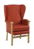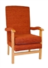 Jubilee Chair essentails light oak finish, a classic and economical easy access high seat chair with removeable seat cushion, high back and front cross bar. The basic model comes with open sides and polished arms, with optional padded uphostered arms, wings, and filled upholstered sides. The chairs are suitable for use in the nursing home or care home and ideal in other healthcare environments such as hospital ward rooms, day care, hospices and housing associations. It is available in a range of anti-microbial vinyls and fabric upholstery options. Vinyl upholstery is recommended for settings requiring quick wipe clean programmes, while fabric upholstery remains waterproofed and washable with a laminated backing, but will require a different cleaning regime. (For further details on the upholstery composition and cleaning please click the (i) on the tabs below.) This chair frame comes in a laquered light oak finish with the option to upgrade to anti-microbial lacquer finish. Minimum Order 6 Chairs. (Contact the office for orders under minimum quantity).