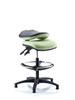 Kirby Medium & High Back Draughtsman Chair, on glides, and suitable for industrial, pharmaceutical and healthcare environments. Applications may include hospitals, research rooms, labs and classrooms. The chair comes in a choice of vinyls or waterproofed fabrics containing anti-bacterial and anti-microbial agents, which are designed for use in high risk infection control areas. The chair has a gas-lift height adjustment lever, a black footring supplied as standard, and a back-tilt adjustment lever. The back height is adjustable as standard on these seats. An optional folding back feature can be added.