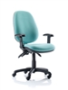 Kirby Jumbo Operator Chair on castors available in a choice of anti-bacterial vinyls or fabrics. Ideal sterile chairs for industrial, pharmaceutical, office, lab, and other healthcare environments. The chair comes in a choice of vinyls or waterproofed fabrics containing anti-bacterial and anti-microbial agents, which are designed for use in high risk infection control areas. The chair has a wide back and seat, and comes with gas-lift height adjustment, and back-tilt adjustment, and an optional tilting-seat adjustment. The back height is adjustable as standard on these seats. The chair comes with no arms, with fixed loop arms, with adjustable arms or foldaway arms and can be supplied with plastic glides instead of castors. Weight Tolerance 23.5 stone.