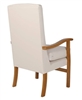 The Jubilee High Back Chair, a classic and economical high seat chair with removable seat cushion, wooden arms, high back and front cross bar. The chairs are suitable for use domestic use, in the nursing home or care home and ideal in other healthcare environments such as hospital ward rooms, day care, hospices and housing associations. It is a stock chair with a 5-10 working day delivery from order for single chair orders only and if more than one is required contact the office and additional delivery charges will apply and available in an anti-microbial vinyl covering C&L Manhattan Plains Cream Vinyl. For Cleaning and Care Please call the office for details. The chair frame comes in a lacquered oak wood finish.