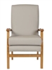 The Jubilee High Back Chair, a classic and economical high seat chair with removable seat cushion, wooden arms, high back and front cross bar. The chairs are suitable for use domestic use, in the nursing home or care home and ideal in other healthcare environments such as hospital ward rooms, day care, hospices and housing associations. It is a stock chair with a 5-10 working day delivery from order for single chair orders only and if more than one is required contact the office and additional delivery charges will apply and available in an anti-microbial vinyl covering C&L Bronx Putty Vinyl. For Cleaning and Care please call the office for details. The chair frame comes in a lacquered oak wood finish.