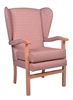 Jubilee Chair essentails light oak finish, a classic and economical easy access high seat chair with removeable seat cushion, high back and front cross bar. The basic model comes with open sides and polished arms, with optional padded uphostered arms, wings, and filled upholstered sides. The chairs are suitable for use in the nursing home or care home and ideal in other healthcare environments such as hospital ward rooms, day care, hospices and housing associations. It is available in a range of anti-microbial vinyls and fabric upholstery options. Vinyl upholstery is recommended for settings requiring quick wipe clean programmes, while fabric upholstery remains waterproofed and washable with a laminated backing, but will require a different cleaning regime. (For further details on the upholstery composition and cleaning please click the (i) on the tabs below.) This chair frame comes in a laquered light oak finish with the option to upgrade to anti-microbial lacquer finish. Minimum Order 6 Chairs. (Contact the office for orders under minimum quantity).